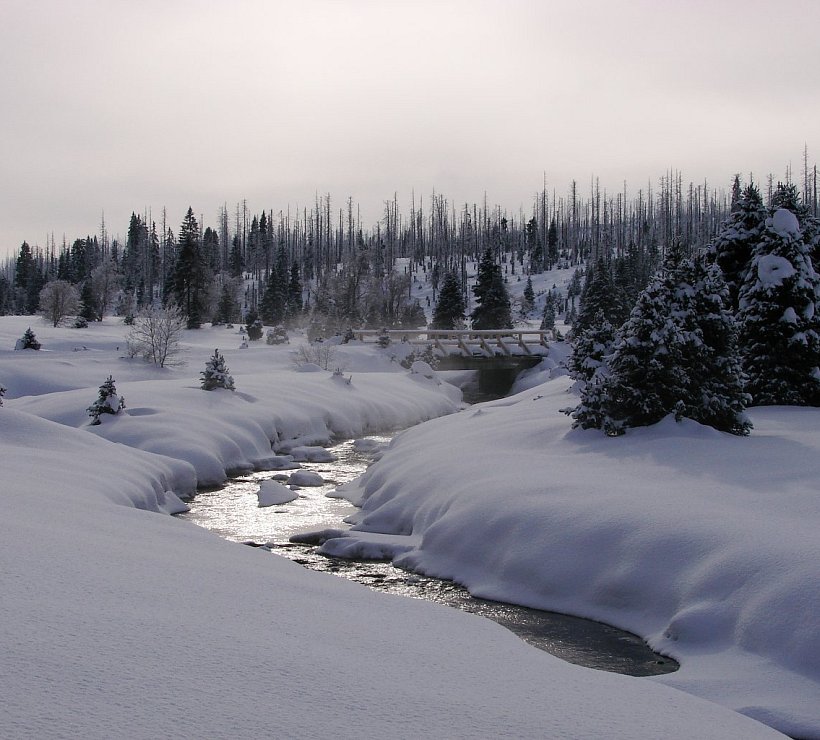 Výlet podél Modravského potoka na hájenku Březník je pro lyžaře běžce opravdu ideální.