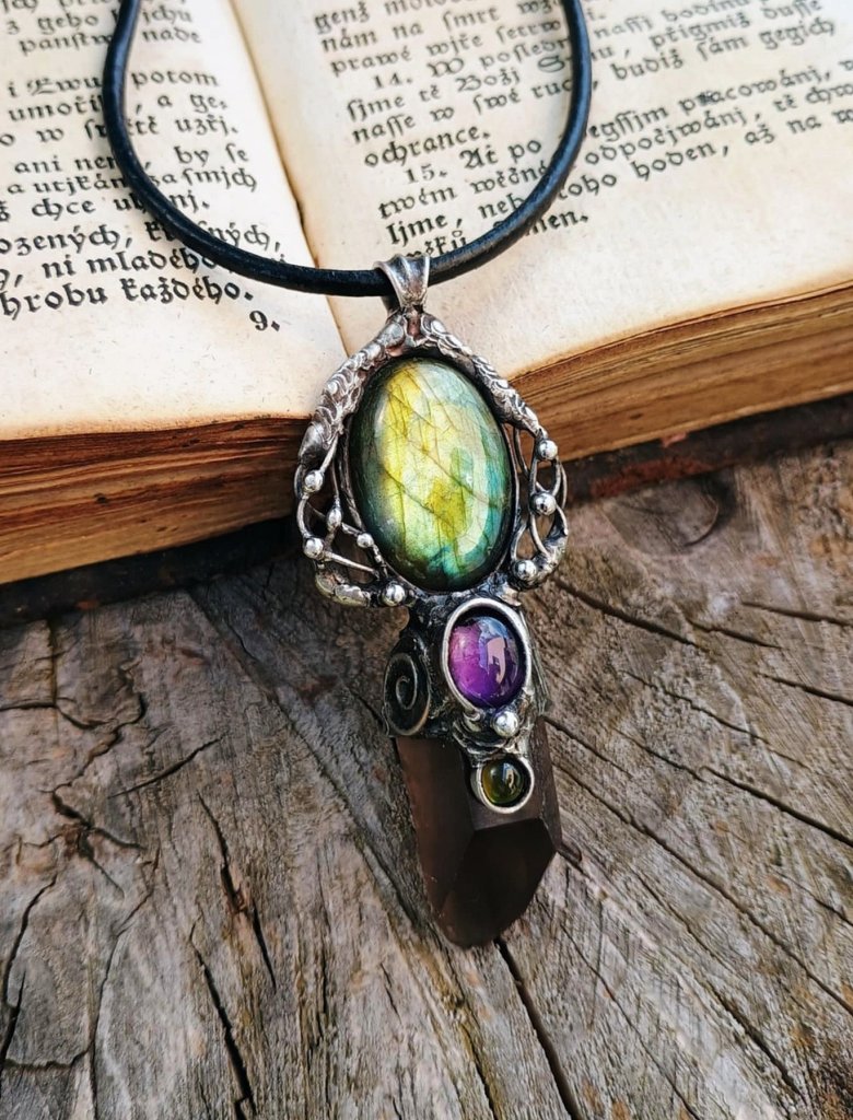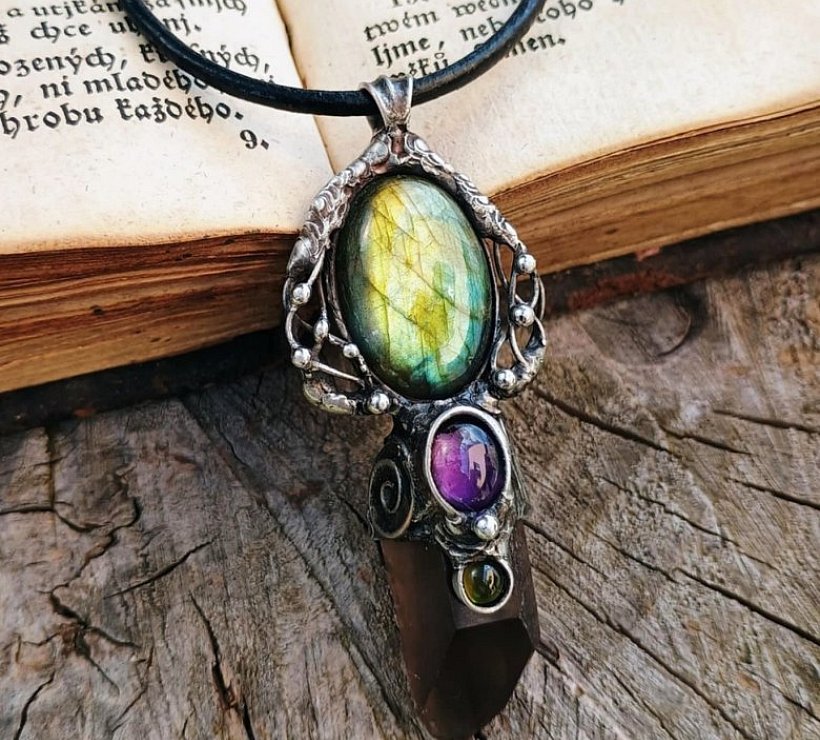 Tyto šperky se vyrábí technikou měkkého pájení. Paní Šmardová k jejich výrobě používá bezolovnatý cín s příměsí 3% stříbra, měděný drát, minerály, perly, lávu a řadu dalších magických materiálů. Šperky zavěšuje na hedvábí, které sama maluje a které si v jejím obchůdku můžete zakoupit i samostatně. Každý kus je neopakovatelný originál.
