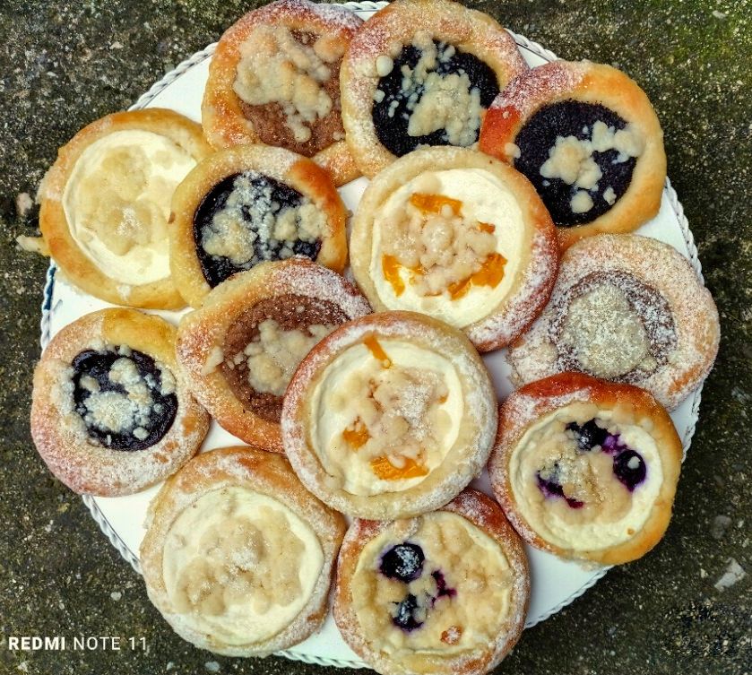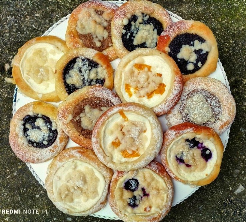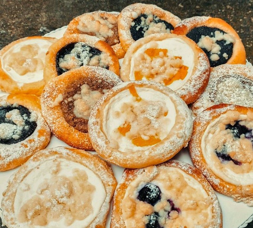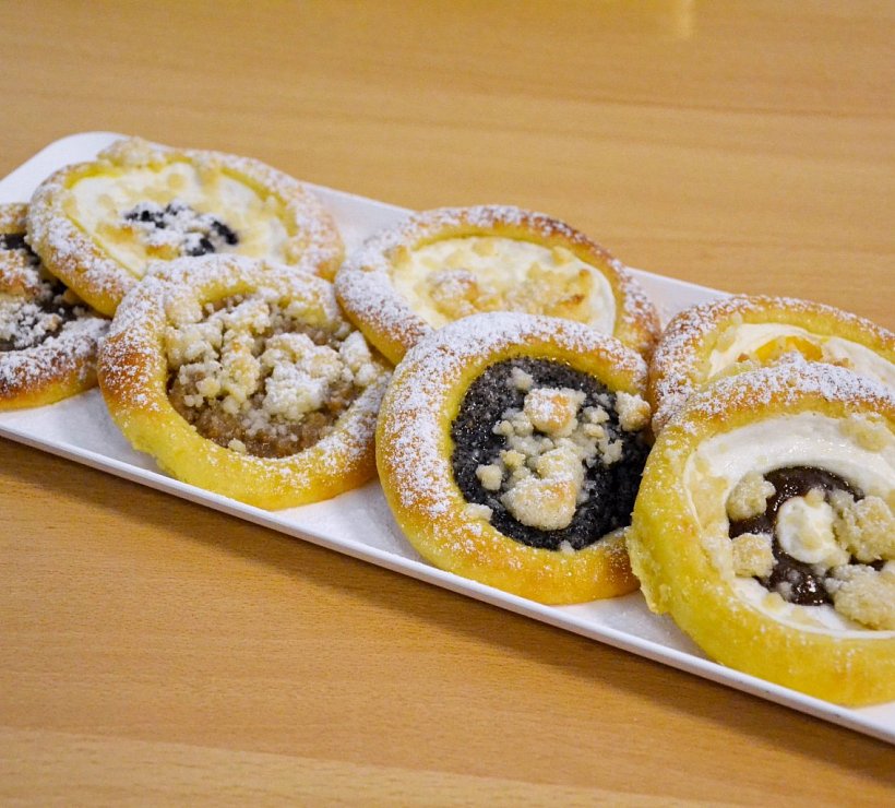 Selské máslové koláčky s pěti náplněmi peče Ilona Houšťavová ve svém cukrářstvá v Přáslavicích. Můžete si pochutnat na koláčků s povidlovou, makovou, ořechovou, tvarohovou nebo ovocnou náplní. Při výrobě preferuje Ilona Houšťavová kvalitní suroviny - maslo, živočišnou smetanu, vejce, cukr a mouku.