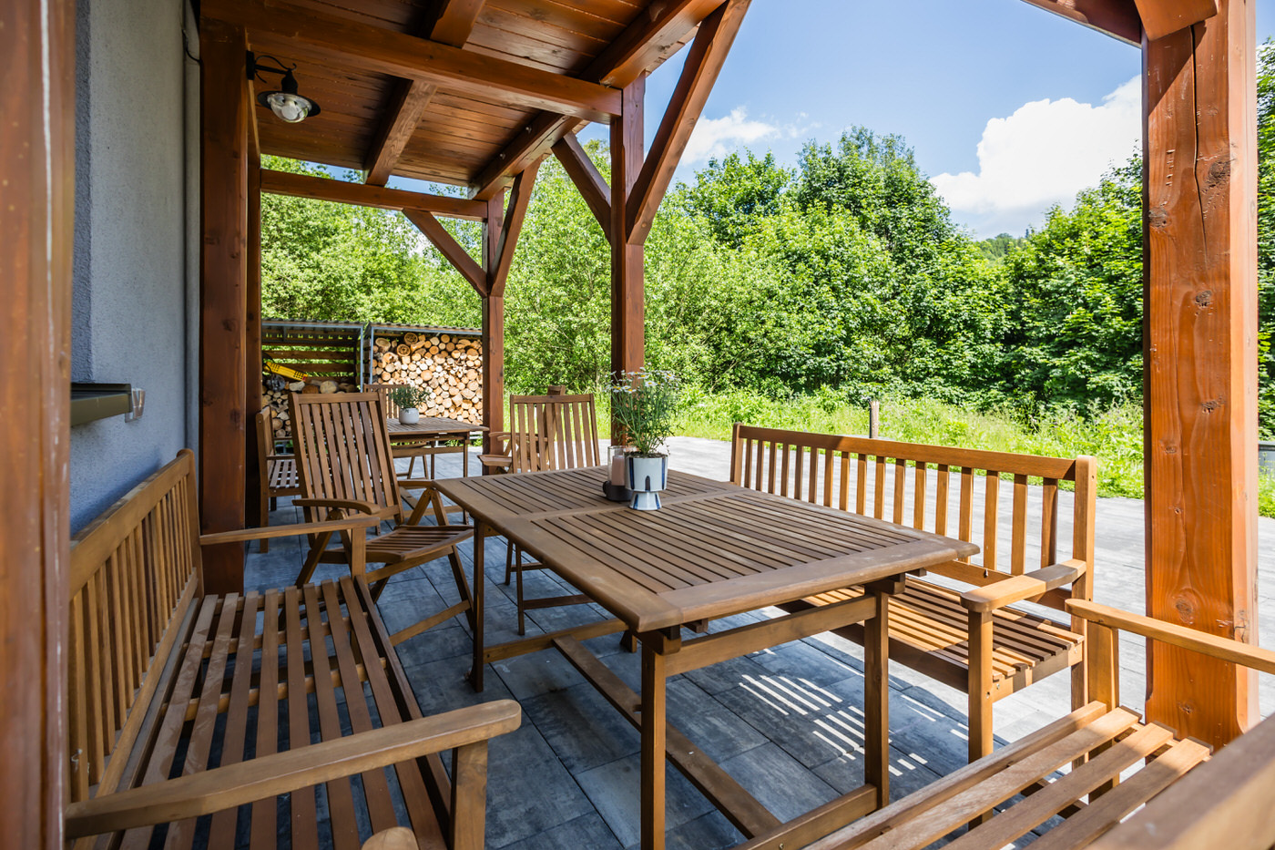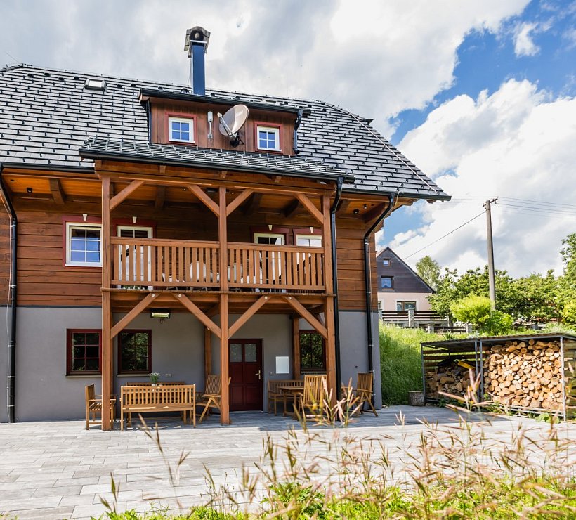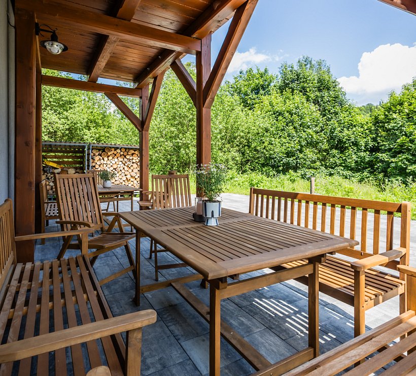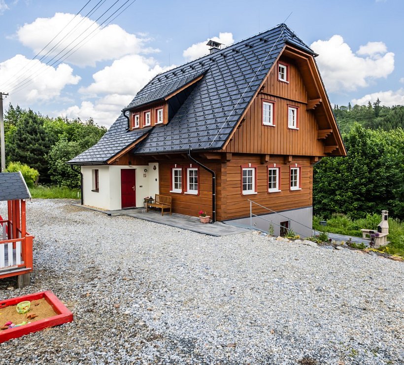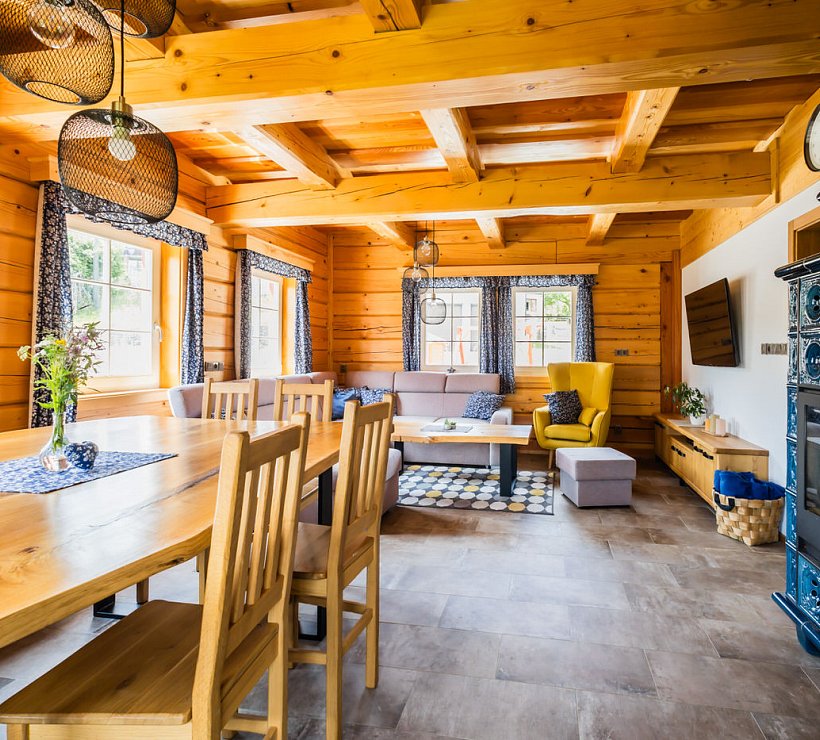 Součástí roubenky je promyšlené vybavení, které podporuje pohodlí a odpočinek v každém ročním období – sauna, vyhřívaná terasa, lyžárna se sušárnou, vířivka v letní sezóně, zázemí pro elektrokola, dětské hřiště i kvalitní gastronomické vybavení. Vše je navrženo tak, aby fungovalo přirozeně, spolehlivě a bez kompromisů.