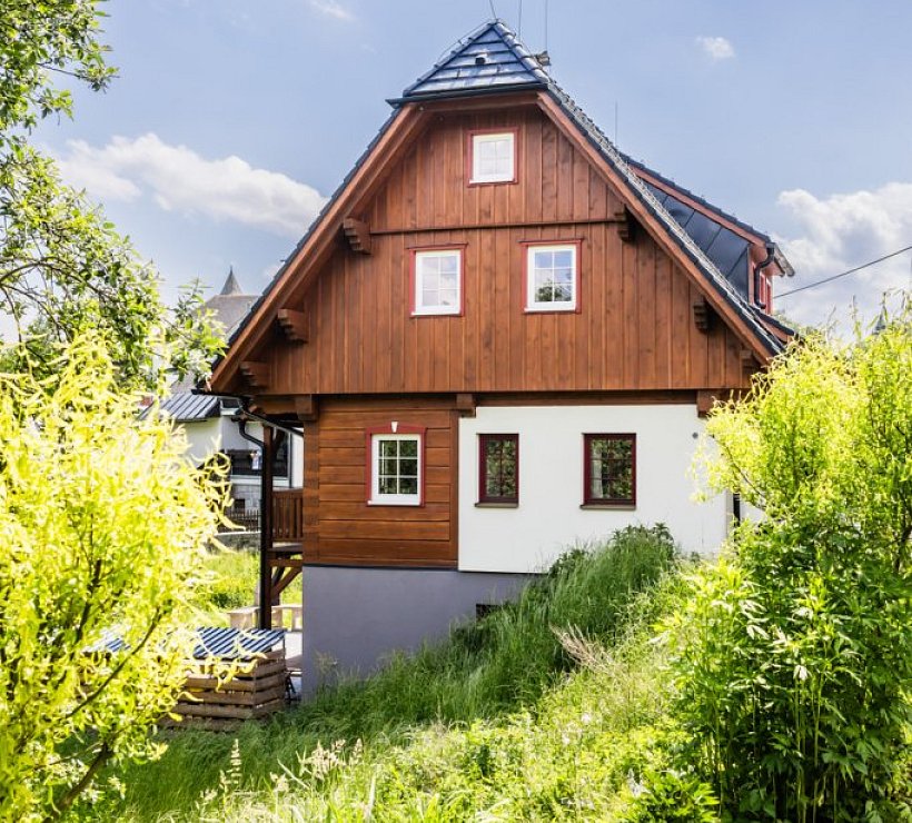 GoldenStein vznikla z lásky k horám, dřevu a poctivému řemeslu. Je místem, kde se zpomaluje čas a kde hned po vstupu ucítíte klid, světlo a vůni dřeva. Každý trám, detail i část interiéru byly vytvořeny s pečlivostí a důrazem na kvalitu tak, aby přirozeně propojovaly krásu tradičních jesenických roubenek s komfortem moderního bydlení.