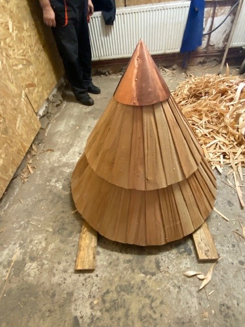 Každý šindel projde rukama výrobce od samého začátku. Dřevo je pečlivě vybíráno a tradičně ručně štípáno, aby zůstala zachována přirozená struktura vláken. Díky tomu jsou štípané šindele výrazně odolnější než řezané varianty – lépe odvádějí vodu, méně praskají a přirozeně stárnou. Následuje ruční strouhání, tvarování a přirozené sušení, které trvá několik měsíců a probíhá bez použití chemických impregnací.