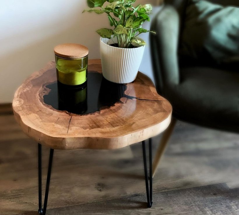 Každý kus může být doplněn epoxidovou pryskyřicí či upraven podle přání zákazníka – od barevnosti až po celkový vzhled.