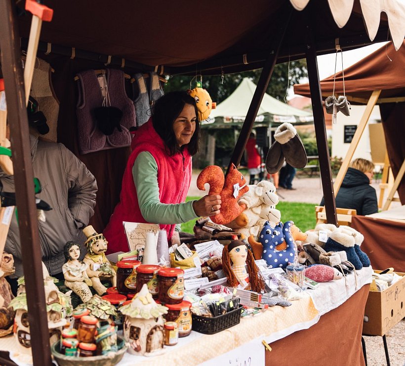 Jarmark, stánky místních regionálních producentů, loutkové divadlo, kolotoč.