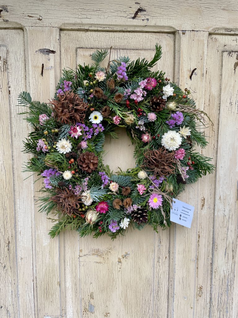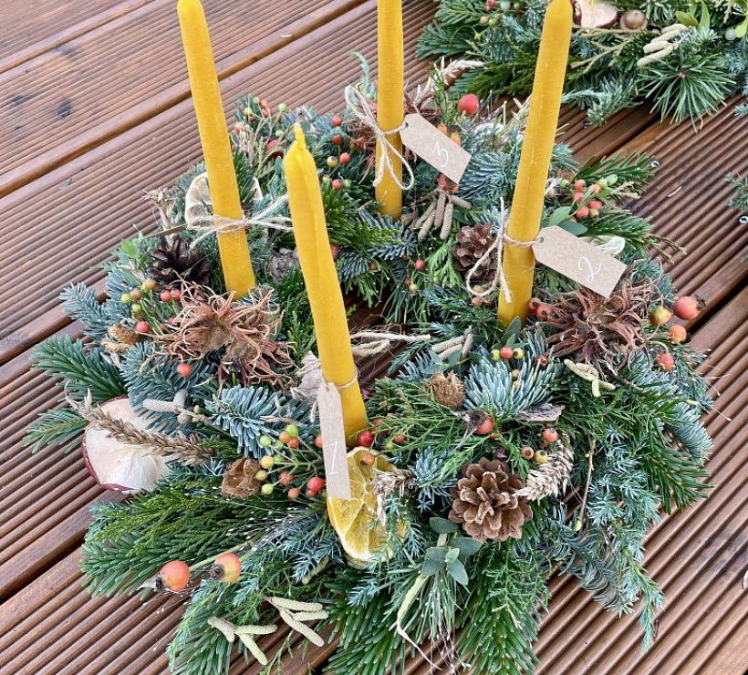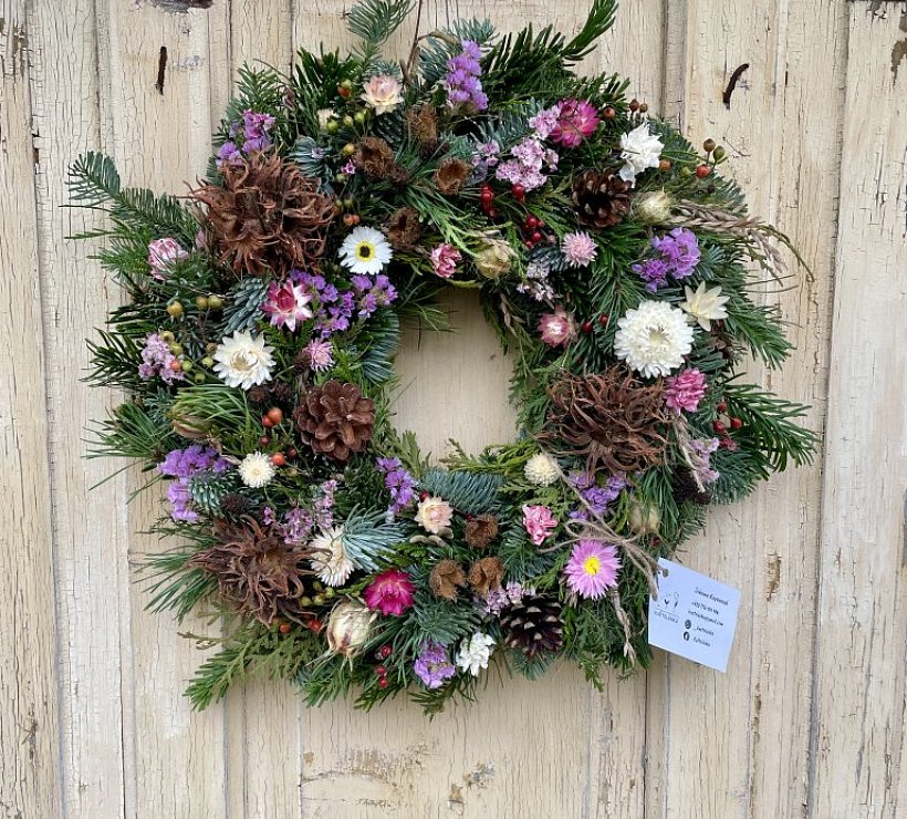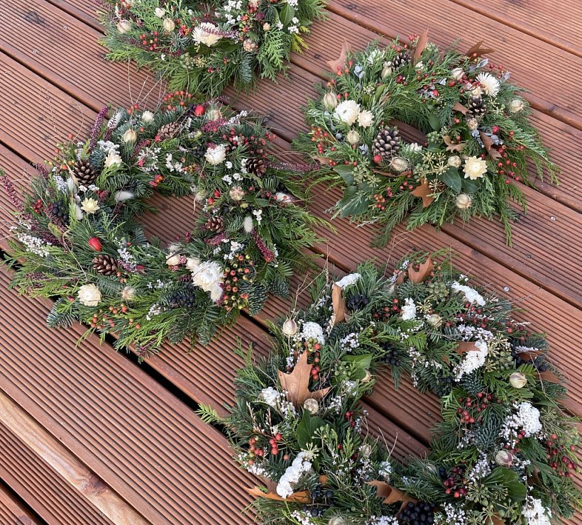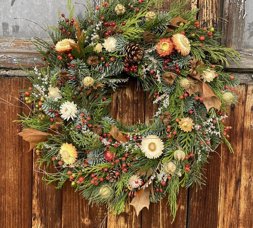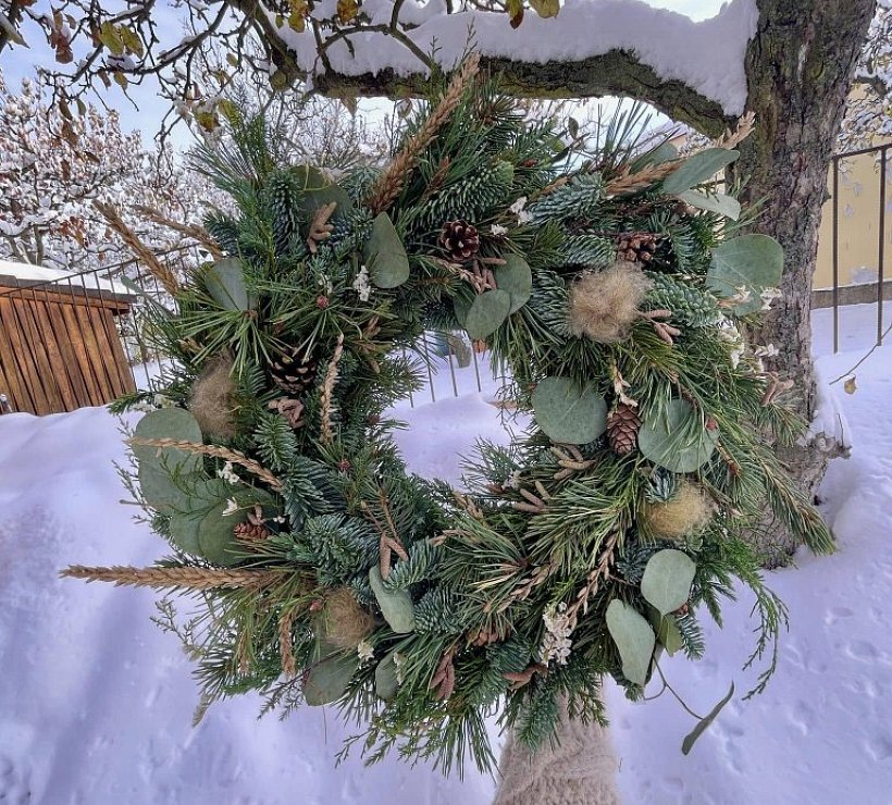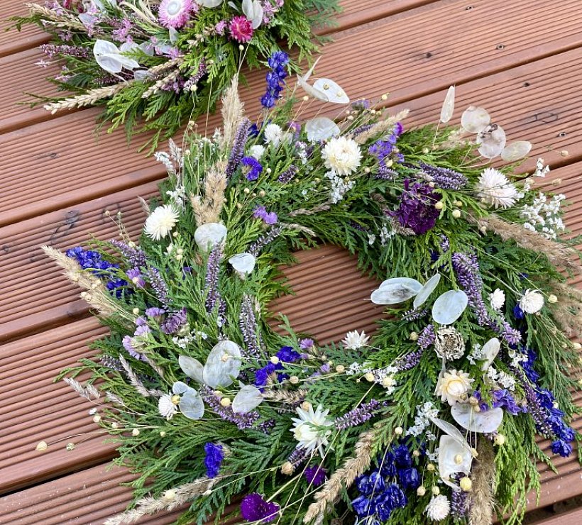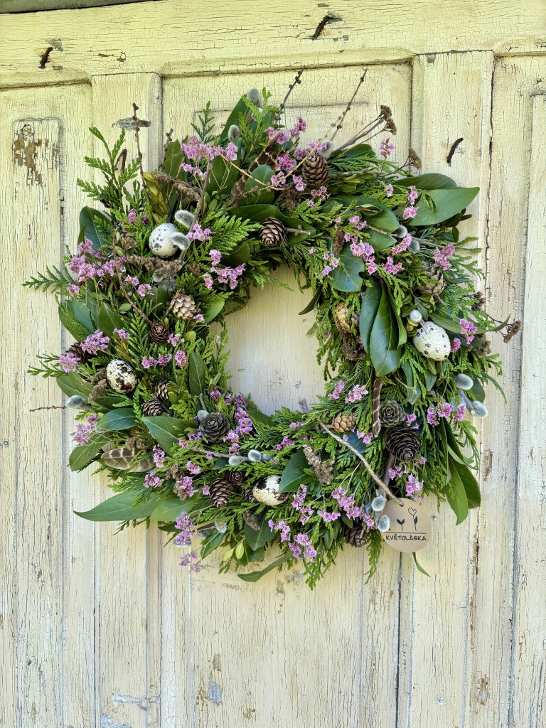 Ručně vyráběné přírodní věnce ozdobené čerstvými nebo sušenými květy, které odráží přirozený cyklus přírody i hlavní svátky v průběhu roku.