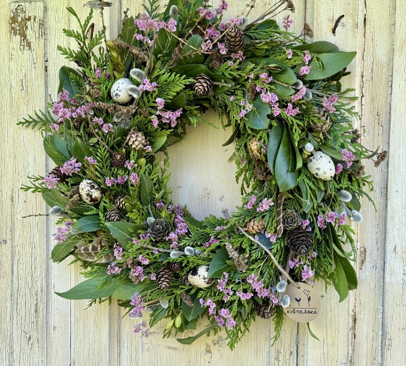 Věnec čtyř ročních období je 100% ekologický a plně kompostovatelný věnec, který poteší každého milovníka přírodních dekorací. Jeho podoba se mění v průběhu roku, dle aktuálně kvetoucích rostlin a hlavních svátků. Jaro - věnec k velikonoční dekoraci, léto - dožínkový věnec, podzim - dušičkový věnec, zima . adventní věnec. Velikost (průměr) věnce je 30 - 40 cm. Věnec je vždy tvořen přírodním základem - a jakmile doslouží, příroda si jej bez problému vezme zpět. Květiny pochází z rodinné zahrady nebo z okolní přírody, vaječné skořápky od místních slepic či křepelek, svíčky z včelího vosku jsou vlastní výroby nebo ve spolupráci se sousedním včelařem. O všechny květiny od Květolásky je skvěle postaráno od semínka až po květ - a to s důrazem na použití čistě přírodních prostředků, přírozenou diverzitu v zahradě a minimalizaci odpadu.