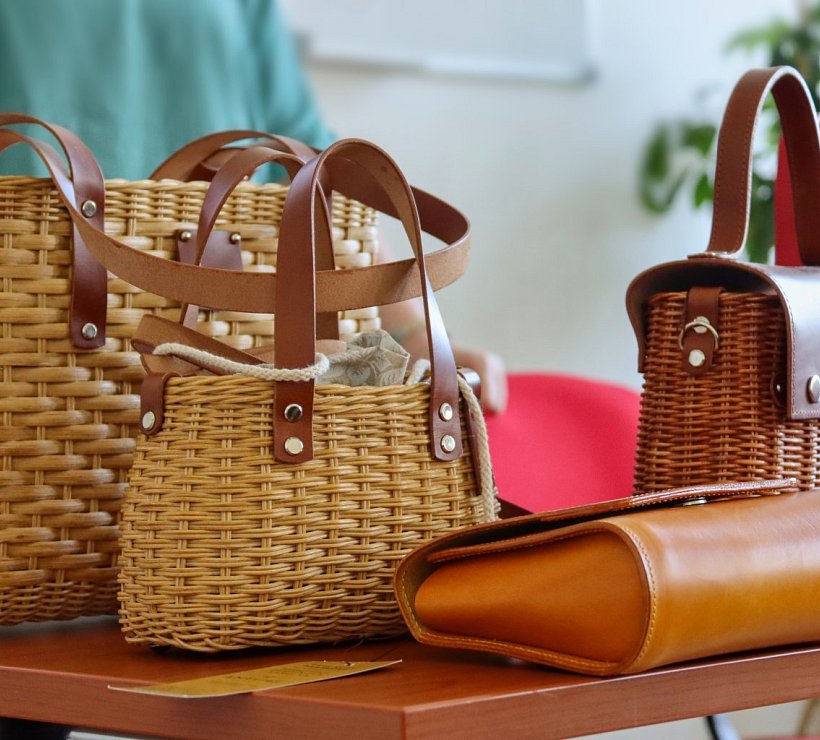 K výrobě proutěných korpusů používám pedig, používám tradiční postupy pletení podobně jako u pletení z vrby. Kůži používám zejména třísločiněnou italskou, jejíž výroba je maximálně šetrná k životnímu prostředí.