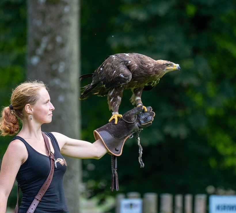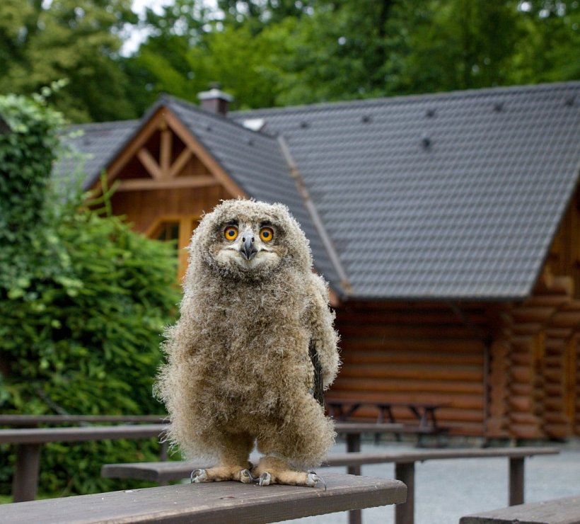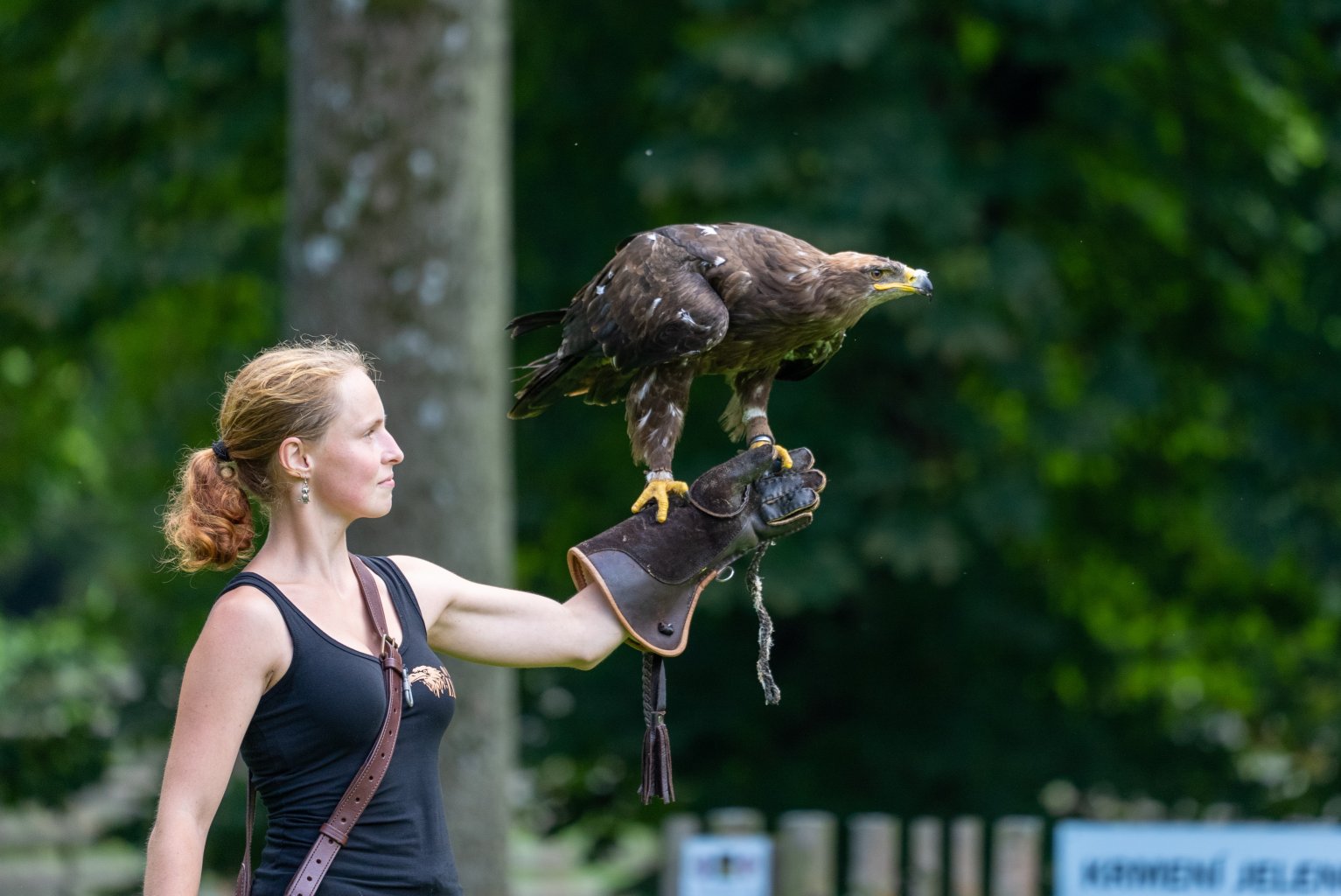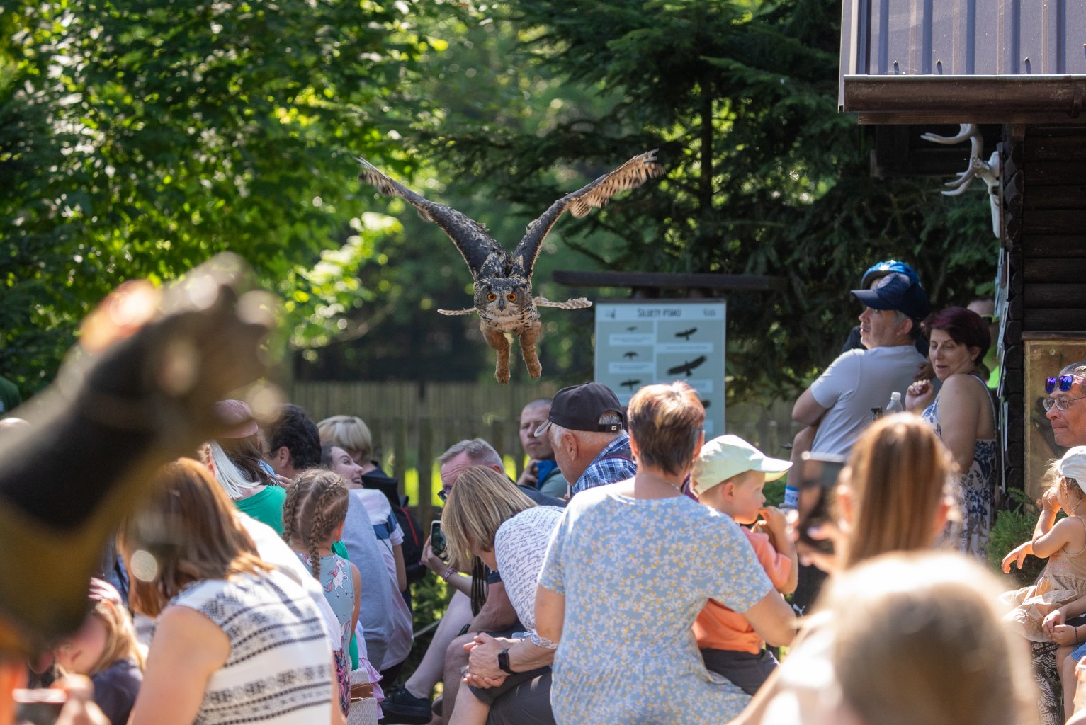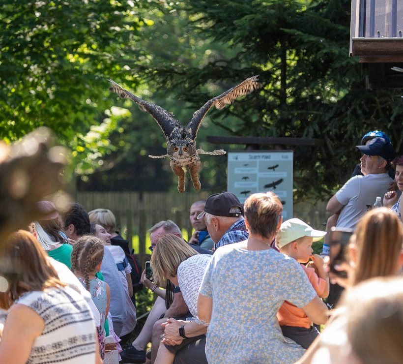 V oboře můžete shlédnout také jedinečnou ukázku dravců a sov. Naše ukázky se od ostatních liší v tom, že vypouštíme několik dravců a sov naráz a ti se pak pohybují ve vhodném prostředí lesní obory a jsou tu doslova jako doma. Dravci jsou na sebe zvyklí a tak se míjejí v těsné blízkosti navzájem i těsně nad hlavami návštěvníků. Je tu možné v jednom okamžiku v letu vidět raroha, káně, luňáka, několik orlů, supa a krkavce. Při ukázce pak dále uvidíte sovy naší přírody od sýčka po výra, poštolky a další.