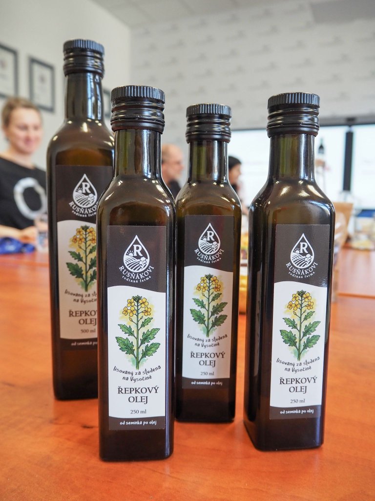 Řepkový olej lisovaný za studena vyrábí Ing. Pavla Rusňáková ze semen vlastní produkce řepky olejky pěstované v katastru obce Jakubov u Moravských Budějovic. Celý proces shrnuje slogan „od semínka po olej“. Olej je šetrně lisován za studena při maximální teplotě 38 °C, několik dní sedimentuje a následně je ručně stáčen do lahví.