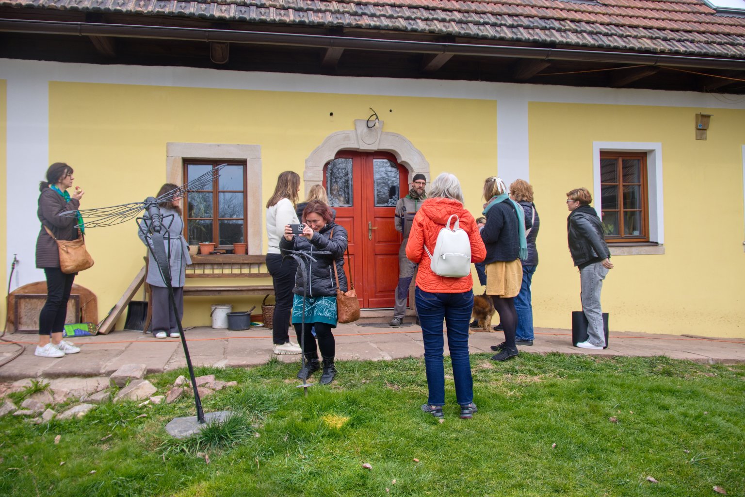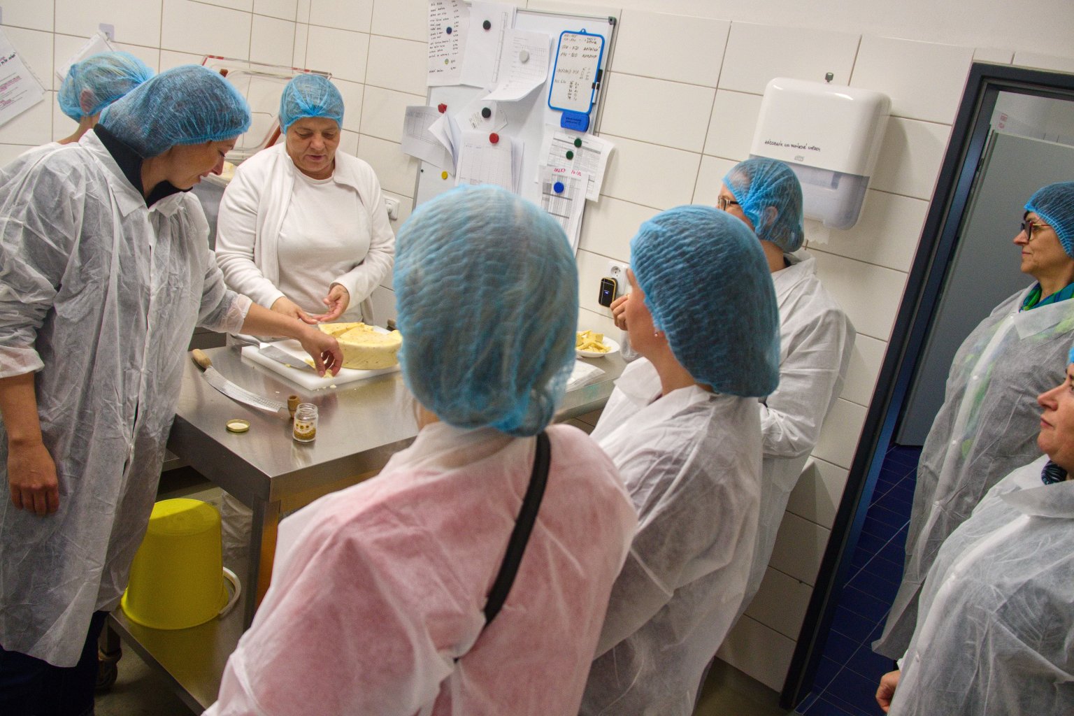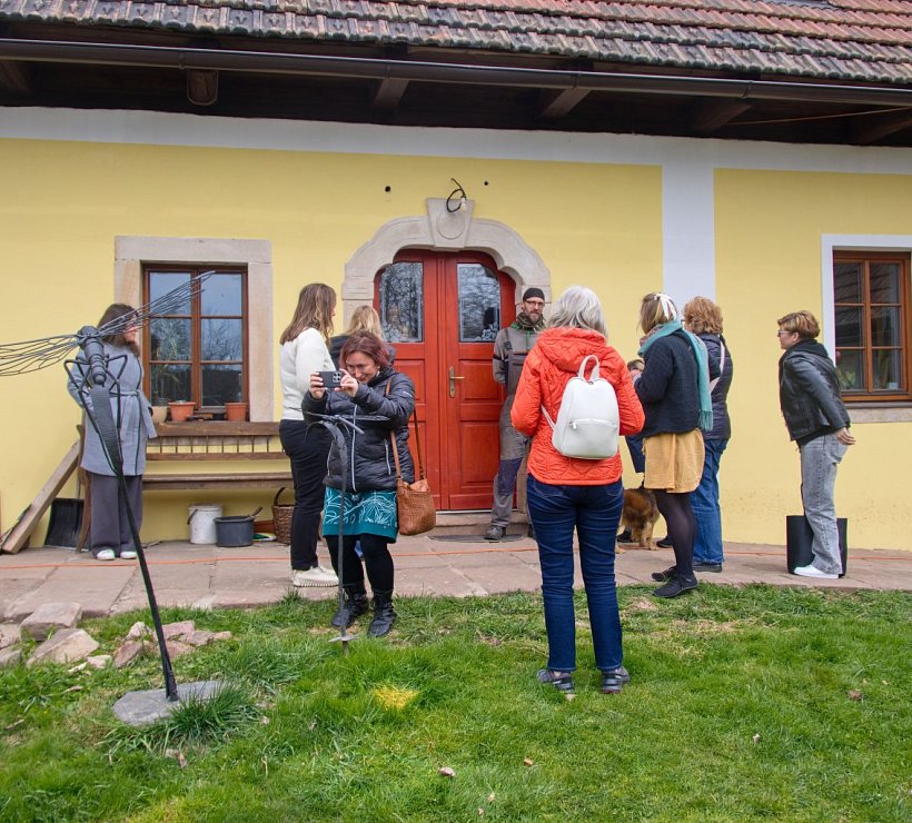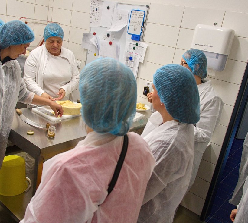 Kovář Alchifer nás provedl kovárnou, kde poodhalil tajemství vzniku drobných i velkých kovaných plastik, mezi nimiž převládá hmyz a další „havěť“ často v nadživotní velikosti, a naše opět výhradně dámské družstvo potěšil i domácím miniobchůdkem, kde nabízí drobnosti pro radost. Ochutnávku i podrobnou exkurzi v sýrárně nám zprostředkovala její manažerka Barbora Žan, která nám svěřila nejen úspěchy, ale i úskalí výroby špičkových sýrů v provozu vzniklém „na zelené louce“. To, že se tam sýrařina daří, potvrdily nejen nadšené výrazy všech „ochutnávaček“, ale také čerstvá zlatá medaile ze světové sýrařské soutěže ve francouzském Lyonu!