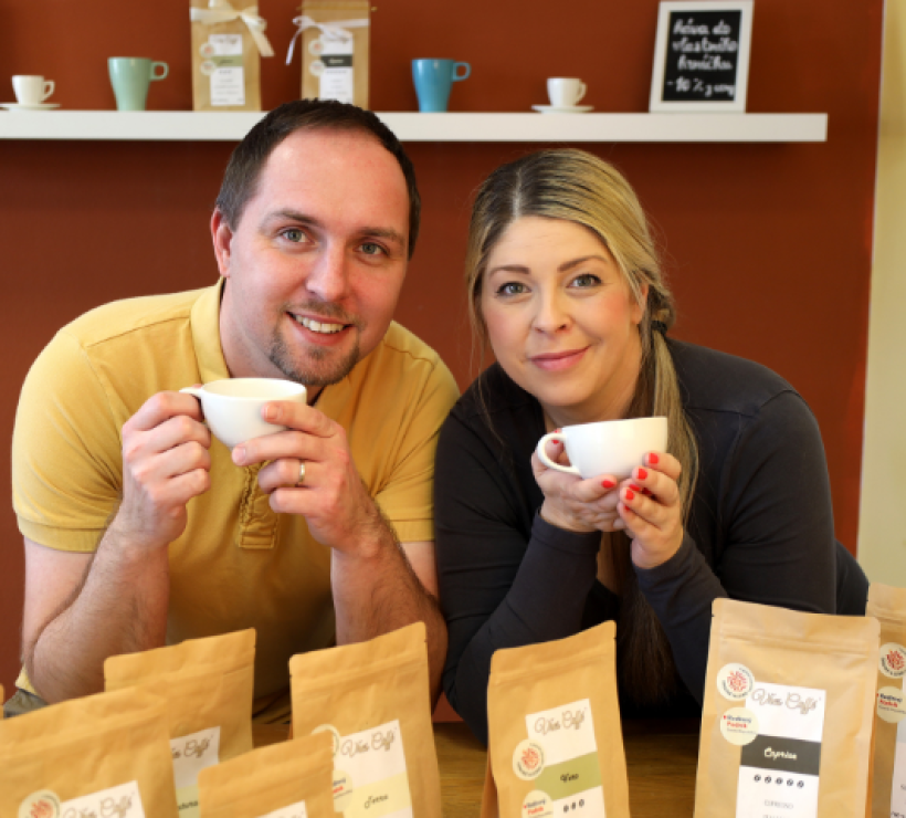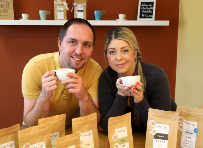 Kateřina a Martin Kutmonovi s pečlivou starostlivostí zpracovávají v rodinné pražírně kávová zrna a připravují pro své zákazníky tu nejlahodnější kávu.