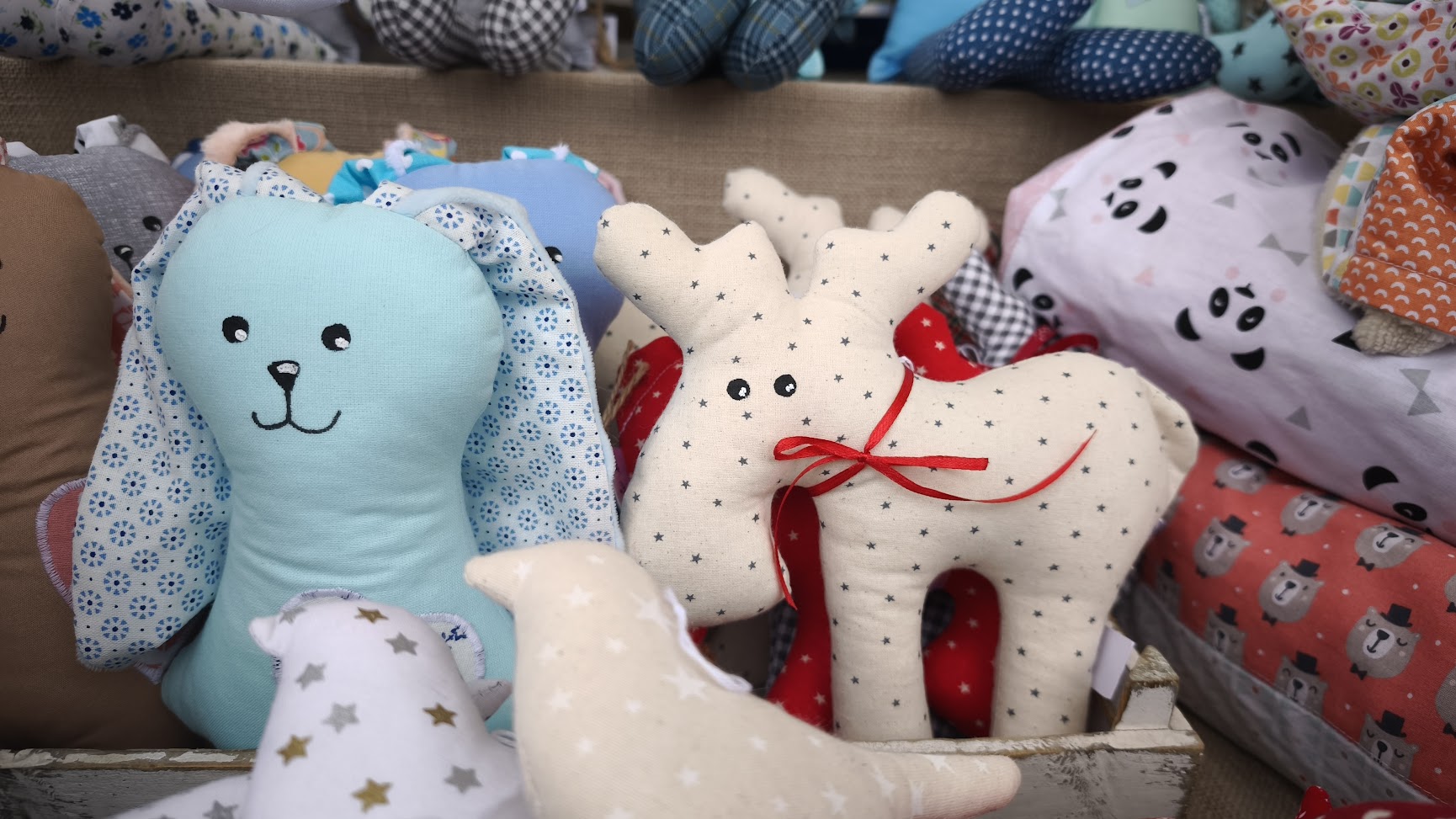 Šitá zvířátka i ostatní výrobky šiji z bavlněných pláten. Postavičky jsou plněny antialergickým dutým vláknem. Šiji převážně zvířátka jako například medvídky, kočky, koníky, zajíce, lišky, pejsky a další motivy. Zvířátka doplňuji krásnými panenkami. Šiji také polštářky ve tvaru zvířátek, jsou větší a slouží jako polštářek při usínání, jako hračka nebo také jako společník na cestování. Děti mají hlavně rády oblíbeného společníka právě na cesty a tím jsou naše polštářky. Zvířecí polštářky také plním sušenou levandulí v samostatném pytlíčku, který se dá ve zvířátku nechat nebo vytáhnout. Levanduli sami pěstujeme na malém políčku, které čítá cca 350 keříků. Zvířátka také plním třešňovými peckami, které se pak dají nahřívat a dávat na bolavá místa nebo naopak chladit.