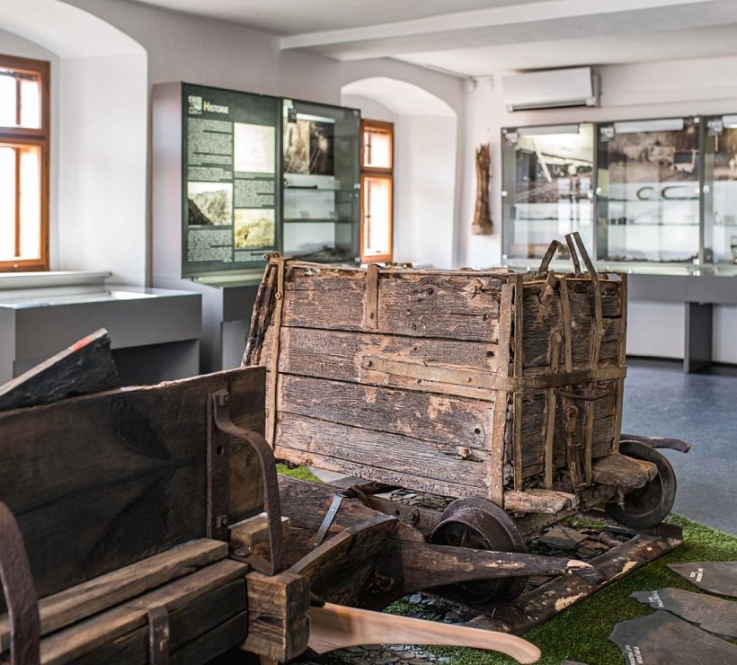 V době největšího rozkvětu, tedy na konci 19. století zaměstnávala těžba a zpracování břidlice na Budišovsku a Vítkovsku více než 2500 lidí. Dnes jsou již doly opuštěné, zakonzervované, některé zasypané, nepřístupné. Historie na vás dýchne mezi exponáty přímo z podzemí. Krumpáče, kladiva, majzlíky, zbytky kolejnic i důlní vozíky, které zůstaly po ukončení dobývání břidlice ve štolách. Břidlice se využívala nejen jako střešní krytina a stavební materiál, to pochopitelně nejvíce, ale prohlédnout si můžete i exponáty jako břidlicové hodiny, břidlicové školní tabulky a pisátka, zkameněliny rostlin a zvířat.
