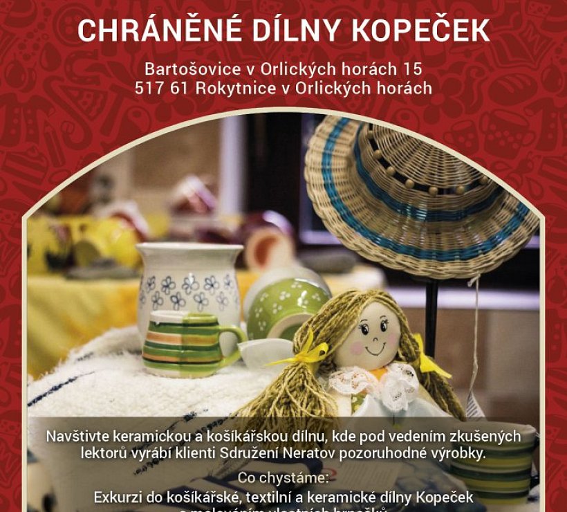 Navštivte keramickou a košíkářskou dílnu, kde pod vedením zkušených lektorů vyrábí klienti Sdružení Neratov pozoruhodné výrobky.