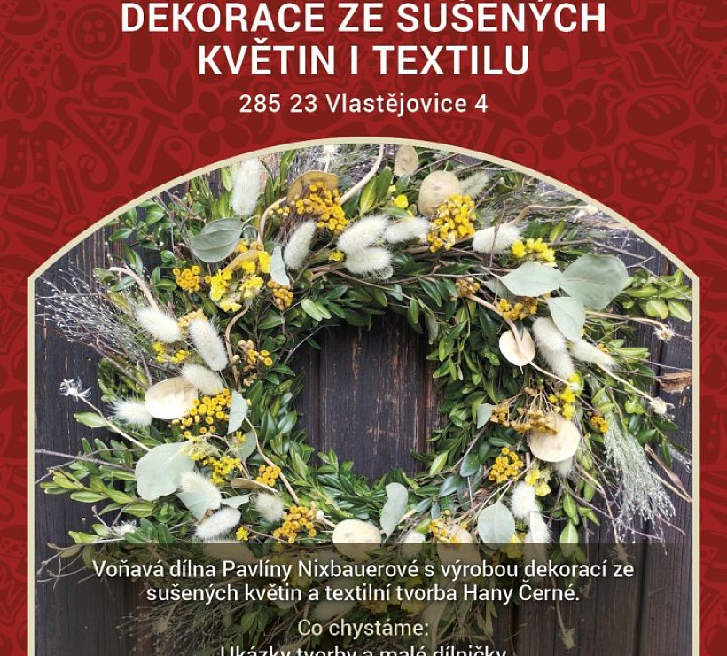Paní Nixbauerová vám předvede, jak se vyrábí věnec a paní Černá vás zasvětí do výroby textilních dekorací.