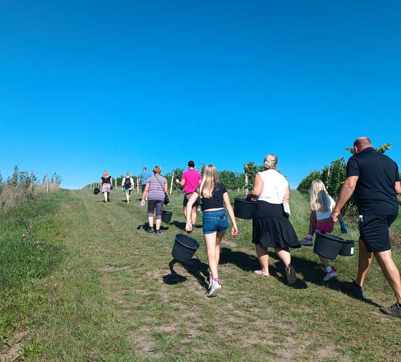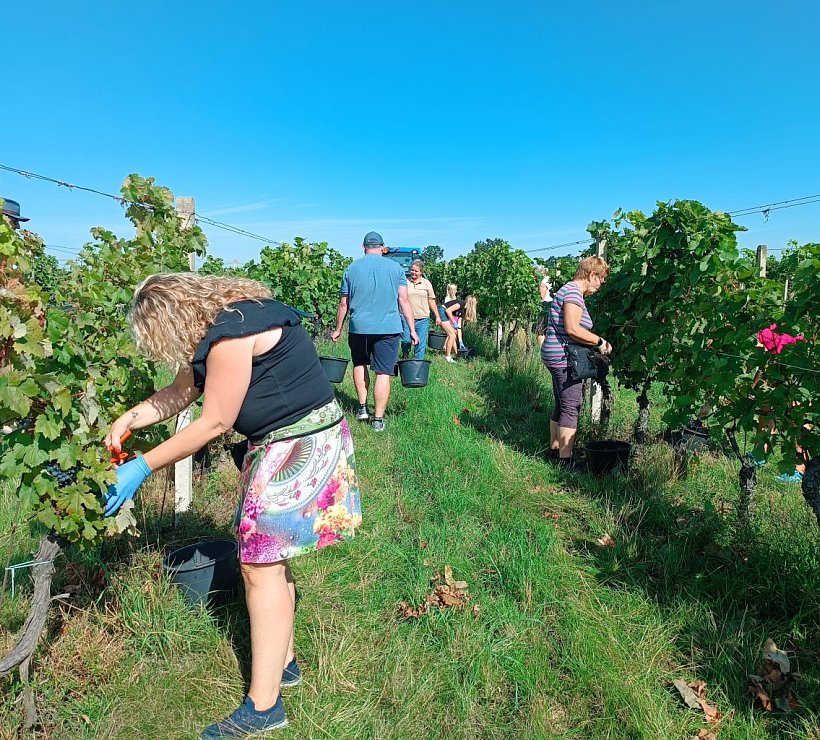 Můžete si vlastnoručně vyzkoušet sběr hroznů a poté vám předvedeme jejich zpracování. Vítáni jsou dospělí i děti. Exkurze je zdarma.