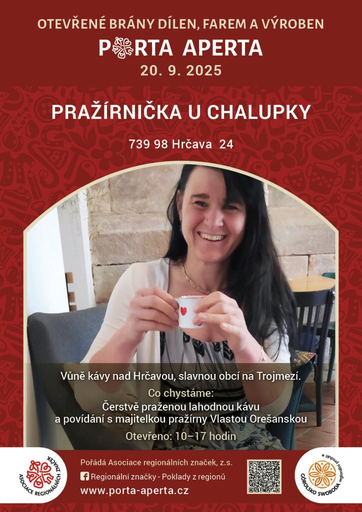 Přijďte se podívat na ukázku pražení kávy, popovídat si s majitelkou Pražírníčky U chalupky o tom, jak praží svou jedinečnou kávu a užijte si vůni i chuť kávy společně s krásnými výhledy do krajiny.