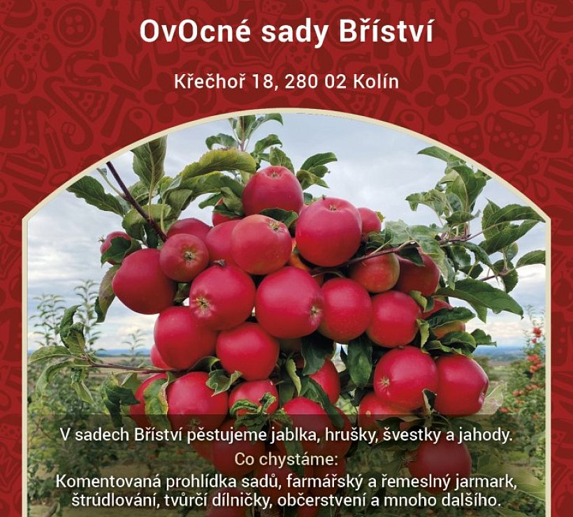 V průběhu dne si užijete zábavný doprovodný program pro celou rodinu s ještě zábavnějším moderátorem a hudbou, soutěže o věcné ceny, skákací hrad a další zábavné i edukační aktivity pro děti, občerstvení, ochutnávky našeho ovoce, farmářský a řemeslný trh.