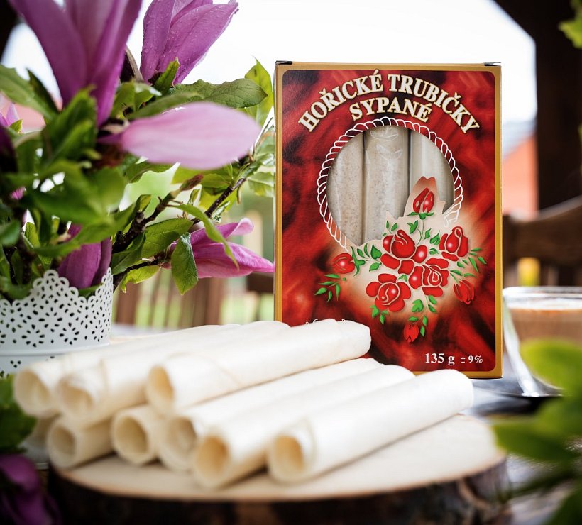 Tradiční pochoutka v několika příchutích. Nechte se zlákat chutí vanilky, kakaa, čokolády, lískového oříšku i hřejivého, vaječného likéru naplněné a stočené do oblíbené oplatky. Naše sypané trubičky jsou provoněné máslem, medem, ořechy a skořicí.