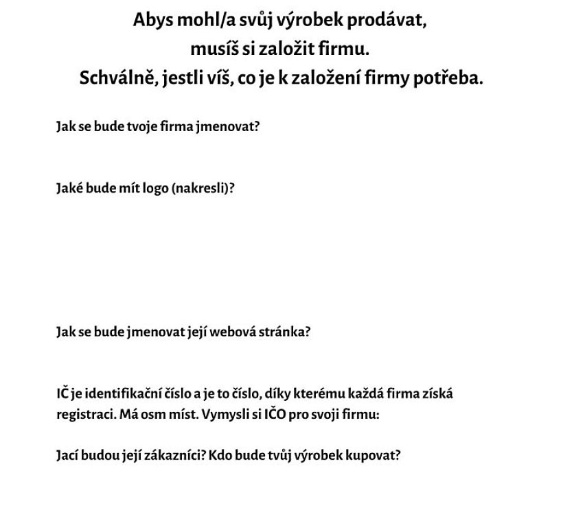 To jsou základní otázky, na které by měly najít odpověď děti, které budou pracovat s podklady připravenými v rámci projektu CENTRAL MOUNTAINS. Dále se dozví, co je potřeba k založení firmy, zkusí si vymyslet své logo a vyzdobit první stánek na trhu.