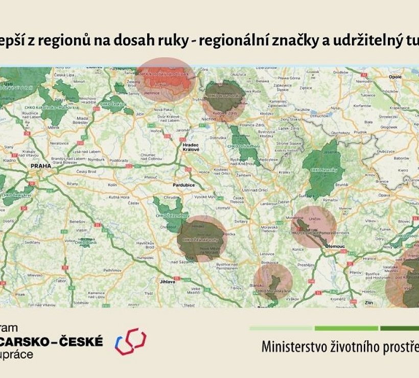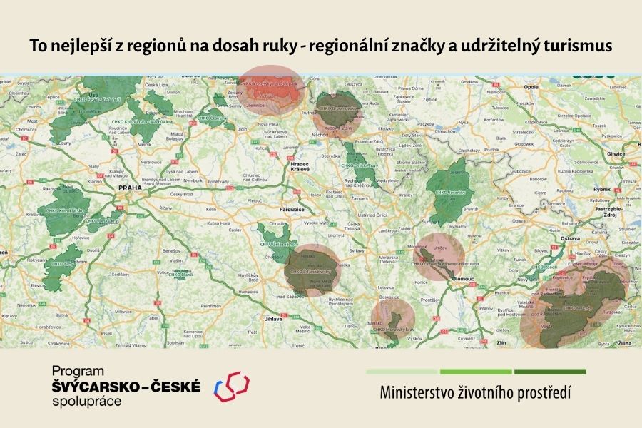 Projekt podpořený z Programu švýcarsko-české spolupráce „Udržitelný turismus a posílení biodiverzity" (č. projektu CH-V2-14) realizujeme v letech 2026–2028 ve spolupráci s partnery – koordinátory regionálních značek ze šesti chráněných území: KRNAP, CHKO Broumovsko, CHKO Žďárské vrchy, CHKO Litovelské Pomoraví, CHKO Moravský kras a CHKO Beskydy.