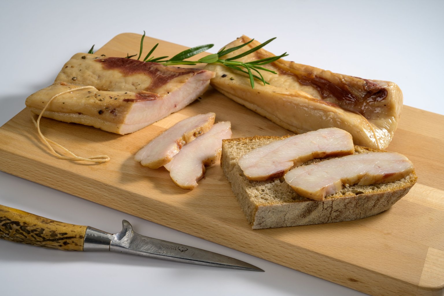 Základem všech našich uzenin je kvalitní maso z divokých prasat a jelenů, ale v nabídce nechybí ani klobása se srnčím nebo paštika se zajícem. Pro větší šťavnatost a jemnější chuť přidáváme vepřové sádlo.